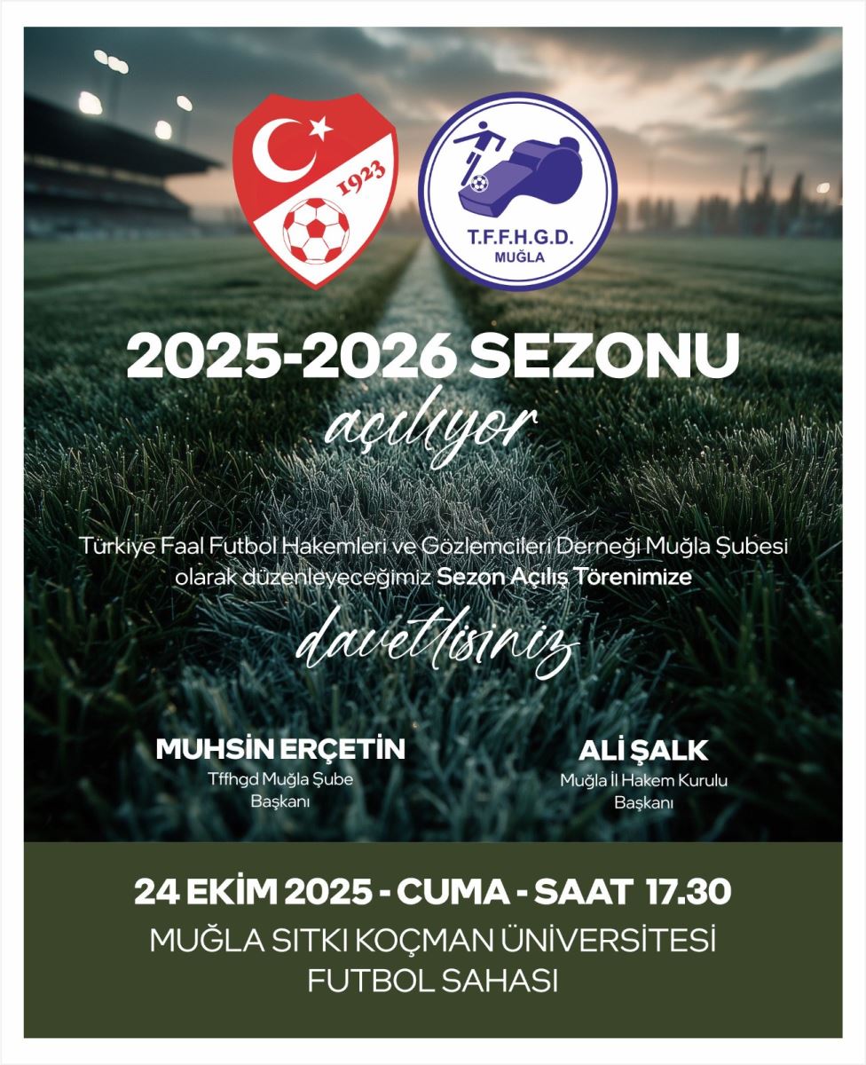 Türkiye Faal Futbol Hakemleri ve Gözlemcileri Derneği Muğla Şube Başkanlığımız ile Muğla İl Hakem Kurulu Başkanlığımız tarafından organize edilerek 24 Ekim 2025 Cuma günü saat 17:30 da Muğla Sıtkı Koçman Üniversitesi Atletizm Pistinde 2025-2026 sezon açılışımız yapılacaktır.